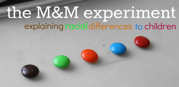 Wonderful post! We are a black family, but all of my children are different shades, I have 2 that are fair skinned, 2 that a brown skinned, and 2 that are dark brown skinned, so in our house it was oh Zachary is White, or Jordon is Black..so wer had to explain that God created all people different, you are a black American and there are different shades in our family, thats just how God made us. I love the M&M's I think I will try that with my 2 little ones. Thanks for sharing.